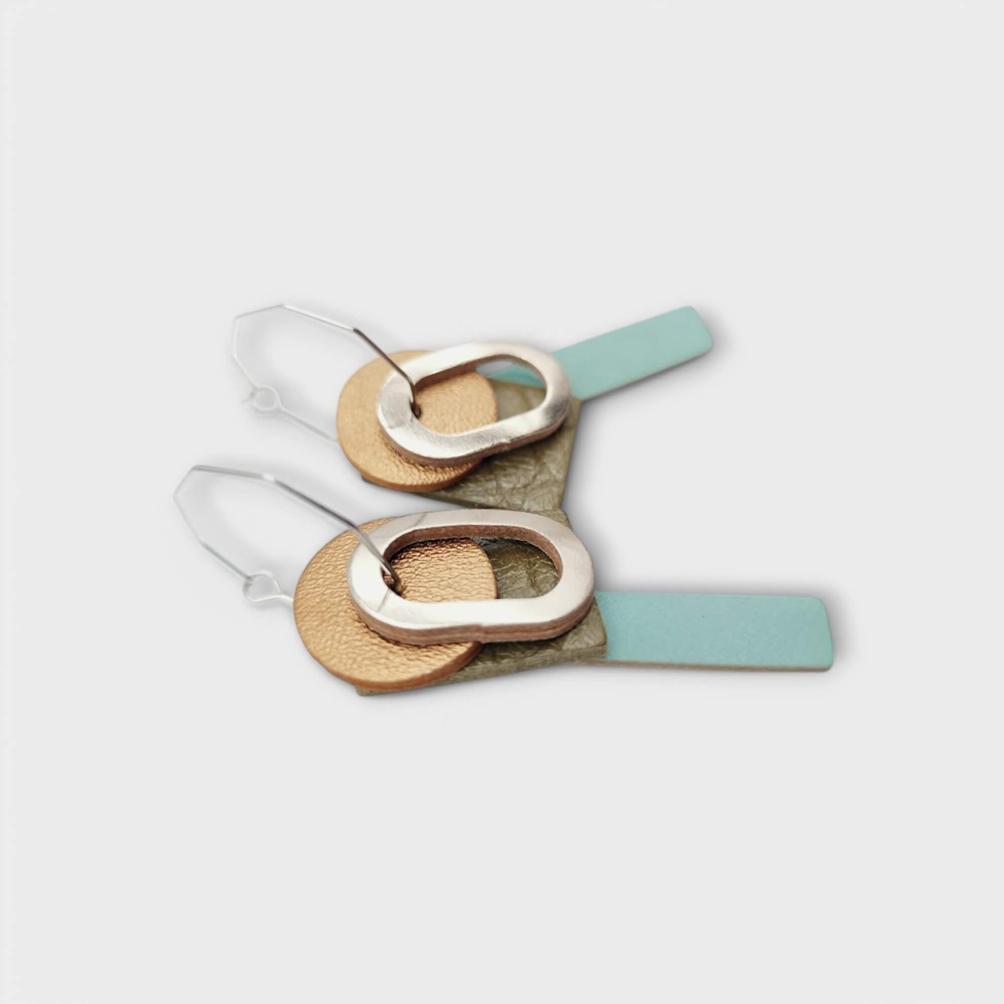 Szín: türkiz pasztell bőr, olivazöld, óarany, tükörlakk bőr