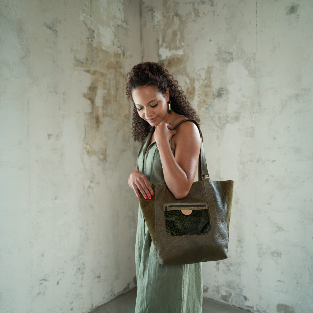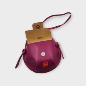 Elején vízálló cipzár, mely szintén a stílusjegye táskáimnak, a plasztikus egységes megjelenésért. Hátsó részére terveztem egy cipzáros zsebet, melyben elfér a telefon egyébb értékek, praktikusság szempontjából ezt fontosnak tartottam. Kényelmesen elfér benne egy nagyobb pénztárca, szemüvegtok, 0,5l palack