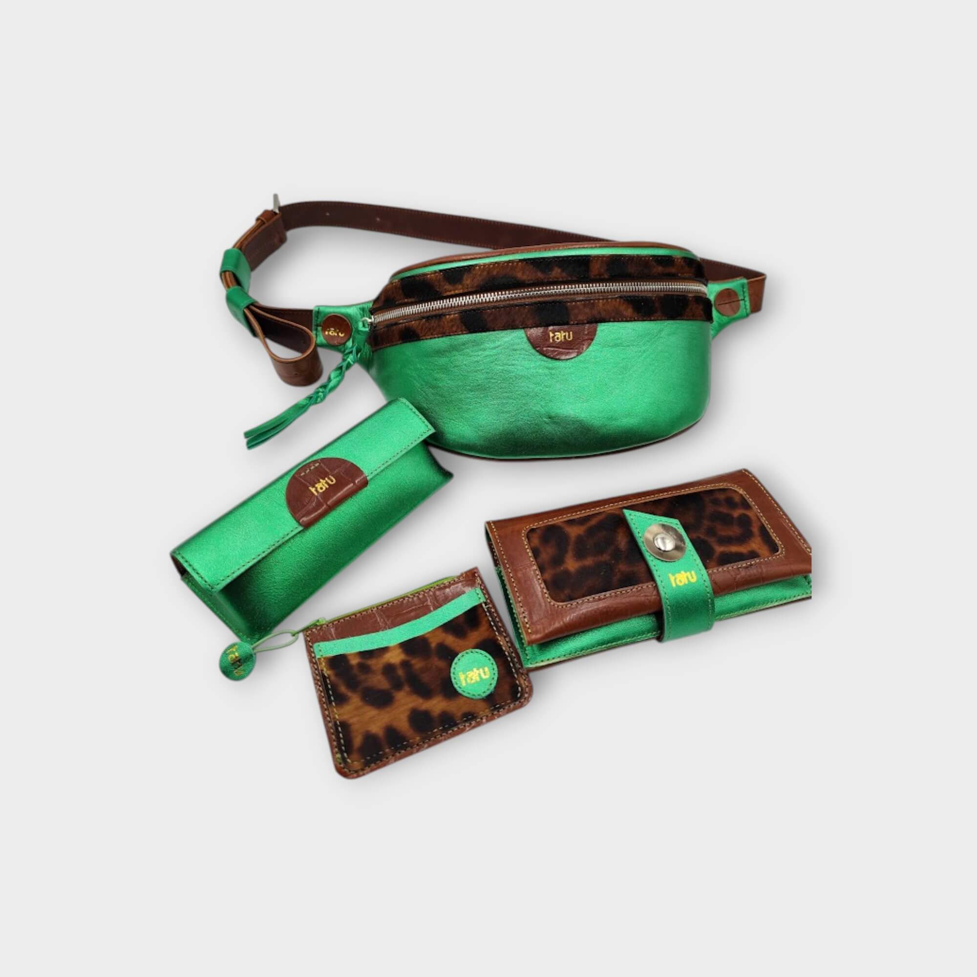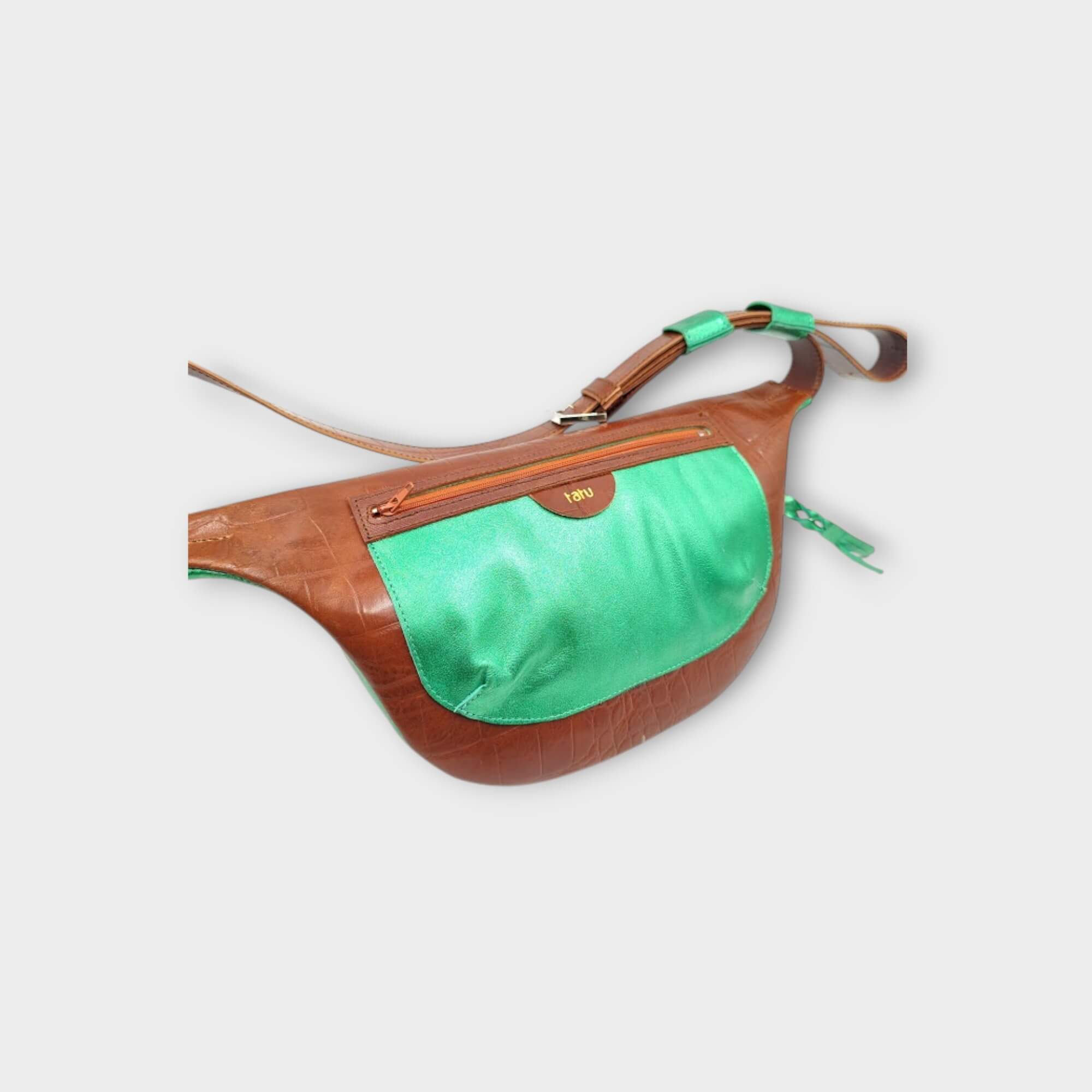 szín: metálzöld marhabőr, konyak krokodil nyomatos marhabőr, belseje zöld velúr kecskebőr, festett kecskeszőr