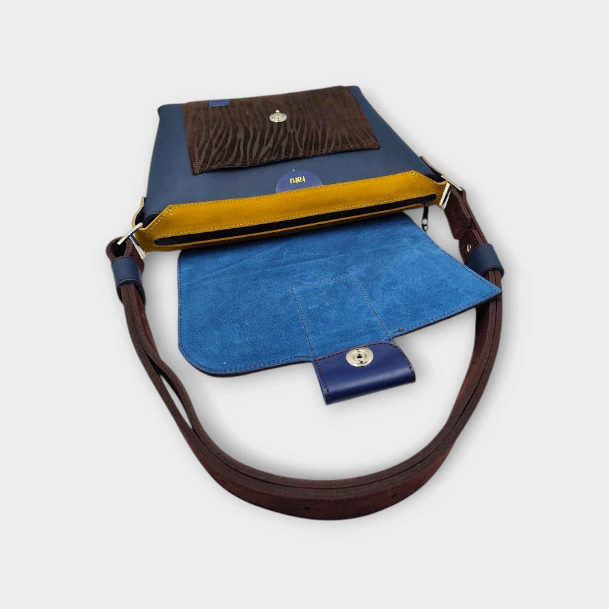 Davida kollekció jellegzetes aszimetrikus szabása és a különleges egyedi biztosnági zár, mely tipikus „tatu” bőrtáskáimnak egyedi jellemzője, mely által kitűnik, az átlag megszokott dolgokat kerülve, igyekszem mindig valami különleges jellegzetes részletet belevinni az alkotásaimba.