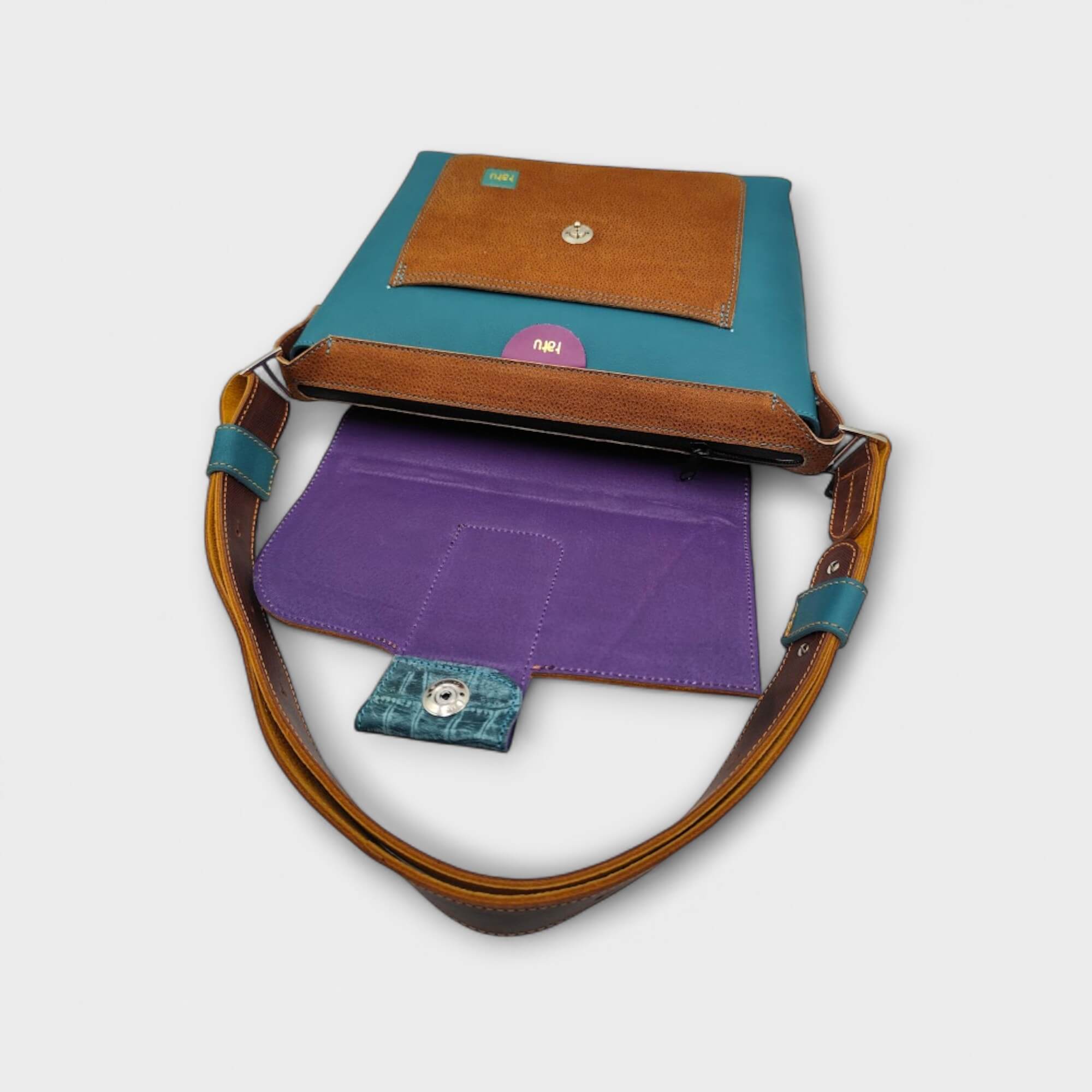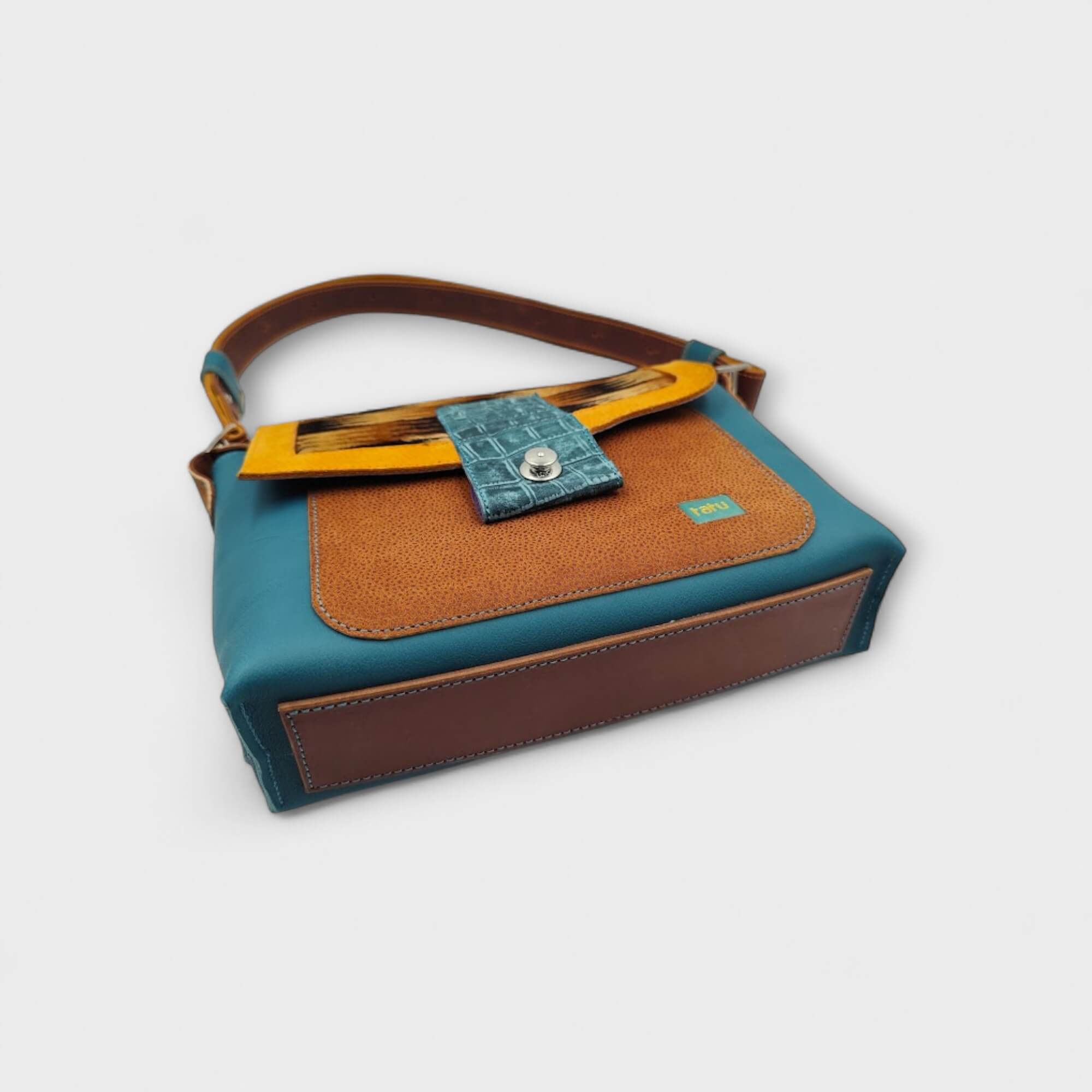 Minden táska az épp aktuális bőrválasztékom és hangulatom által komponált alkotás, sok színből álló vidám, olykor visszafogott színösszeállítás is előfordul. Egyedi egy-egy darabos limitált táskák.