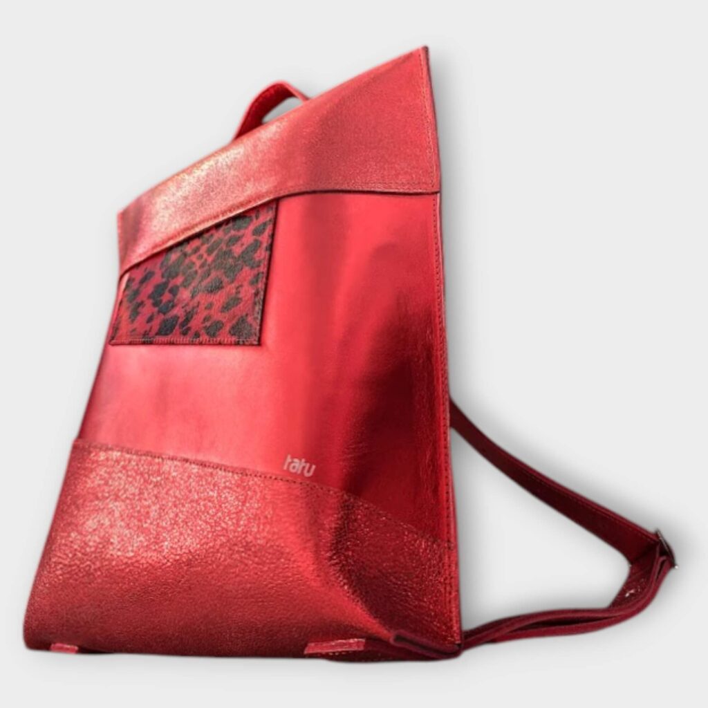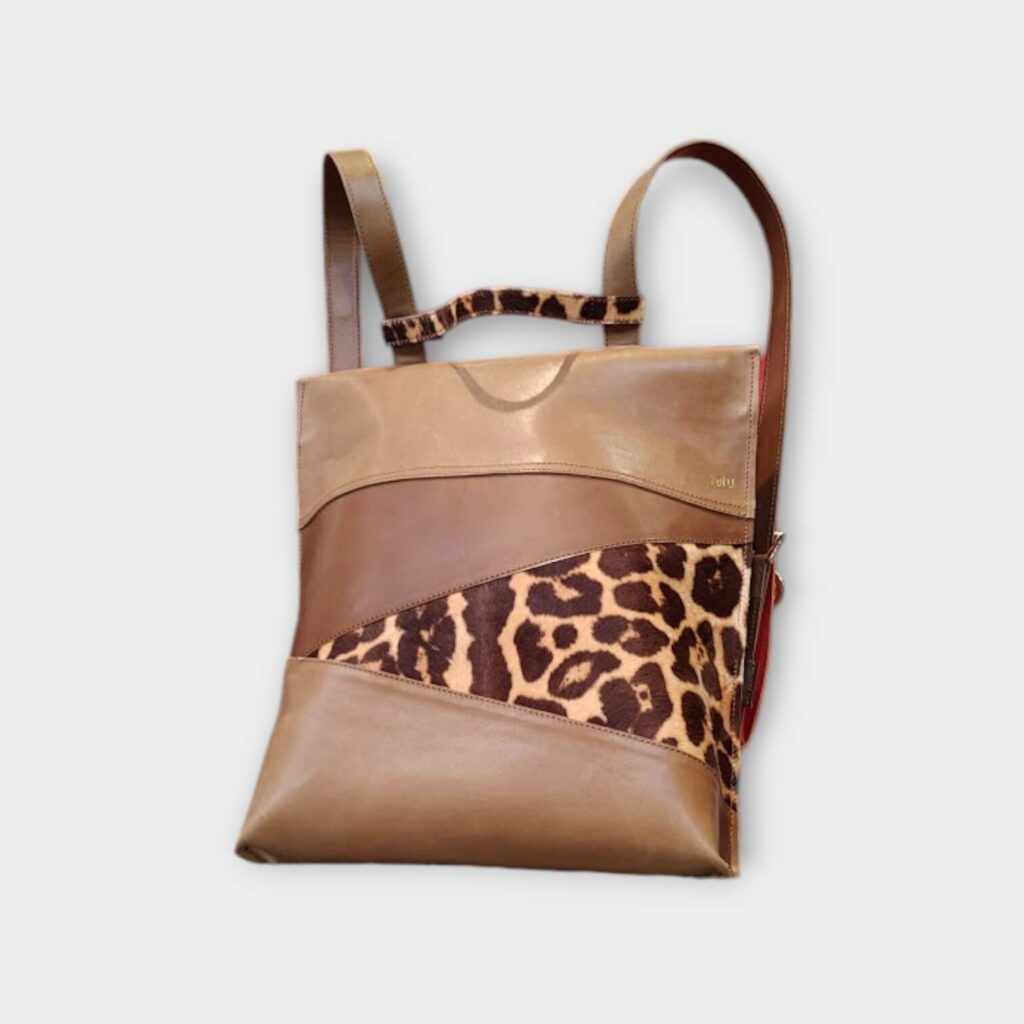 A táska szabásvonala lehetővé teszi, hogy 1 lapból kiszabható letisztult modellként jelenjen meg, ugyanakkor feldobható a több elemes szabás is, mely lehetőséget ad a kisebb maradékok belevarázsolására. Design elemként került a táskára a színben hozzá passzoló fekete szőr kiegészítő, és még 2 féle fényű fekete bőr is.