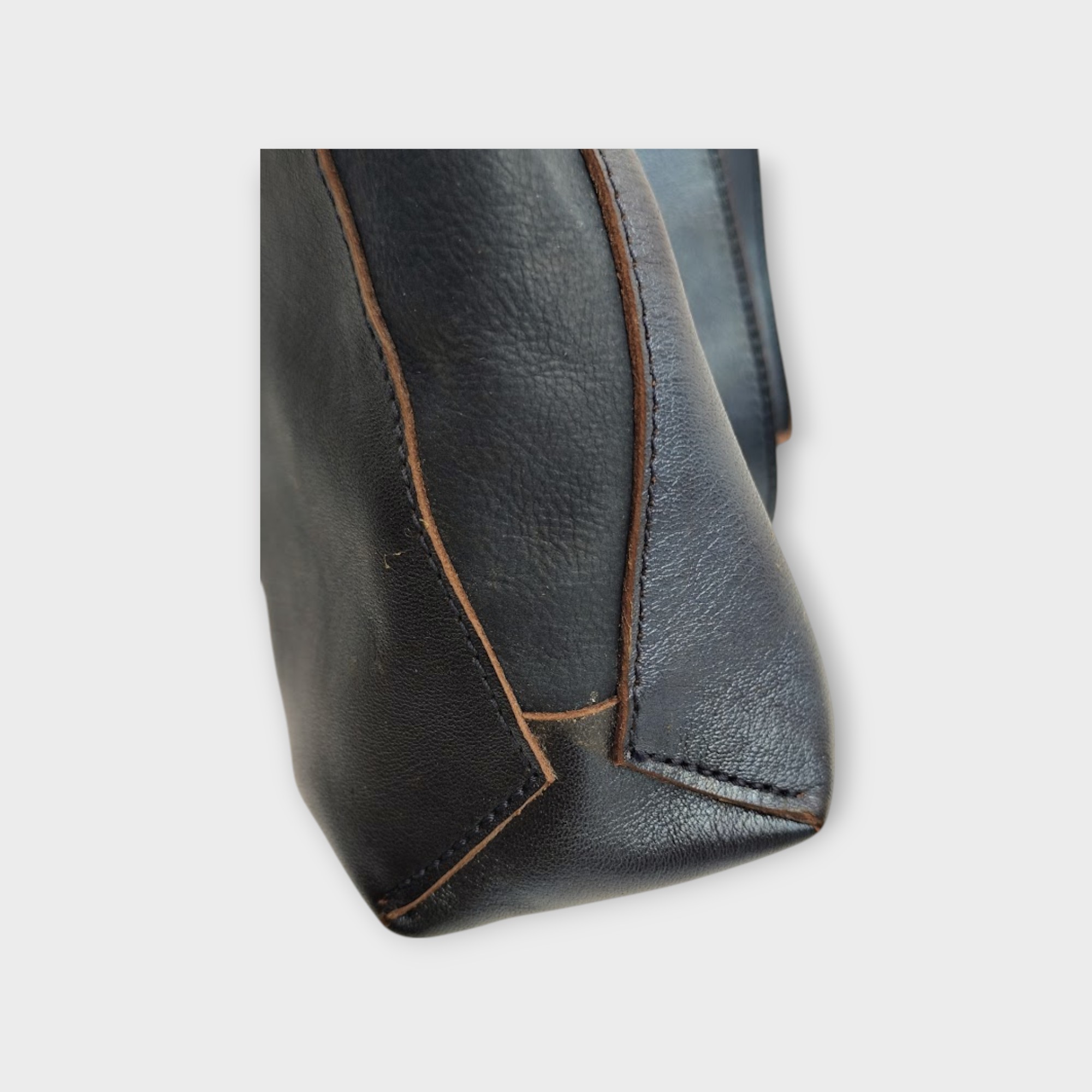 Classic kollekció jegyeit viselve az elején aszimmetrikus jellegzetes pánntal. Nagy bőr válltáska, igazán jól pakolható , táska külső profilján 1 db cipzáros zseb. A táska egy rétegű béleletlen puha tapintású marhabőr, elején festett nyírt szőr zsebbel, mely igazán jó karaktert ad a táska megjelenésének.
