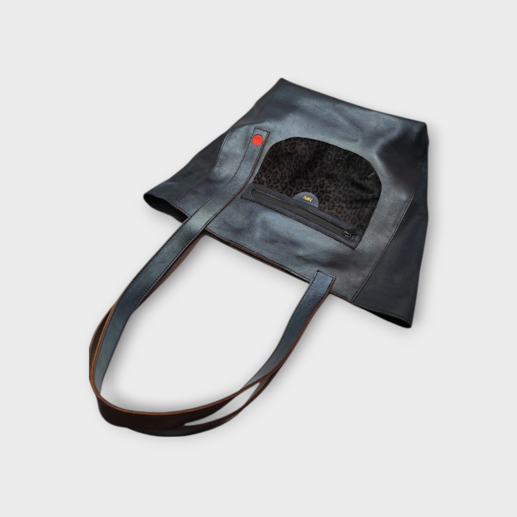 Szín: grafit, kékes fényű marhabőr, festett leopárd mintás szőr éjjkék