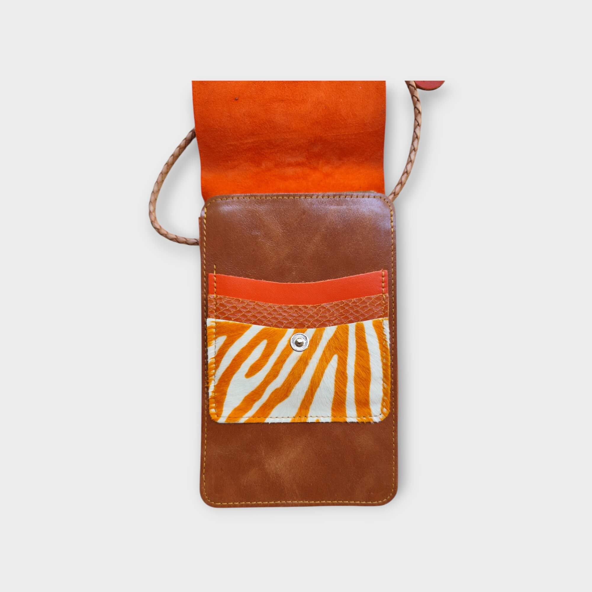 anyaga: konyak marhabőr, narancs kígyóbőr hatású mart marhabőr, narancs-fehér kecskeszőr zebra mintával