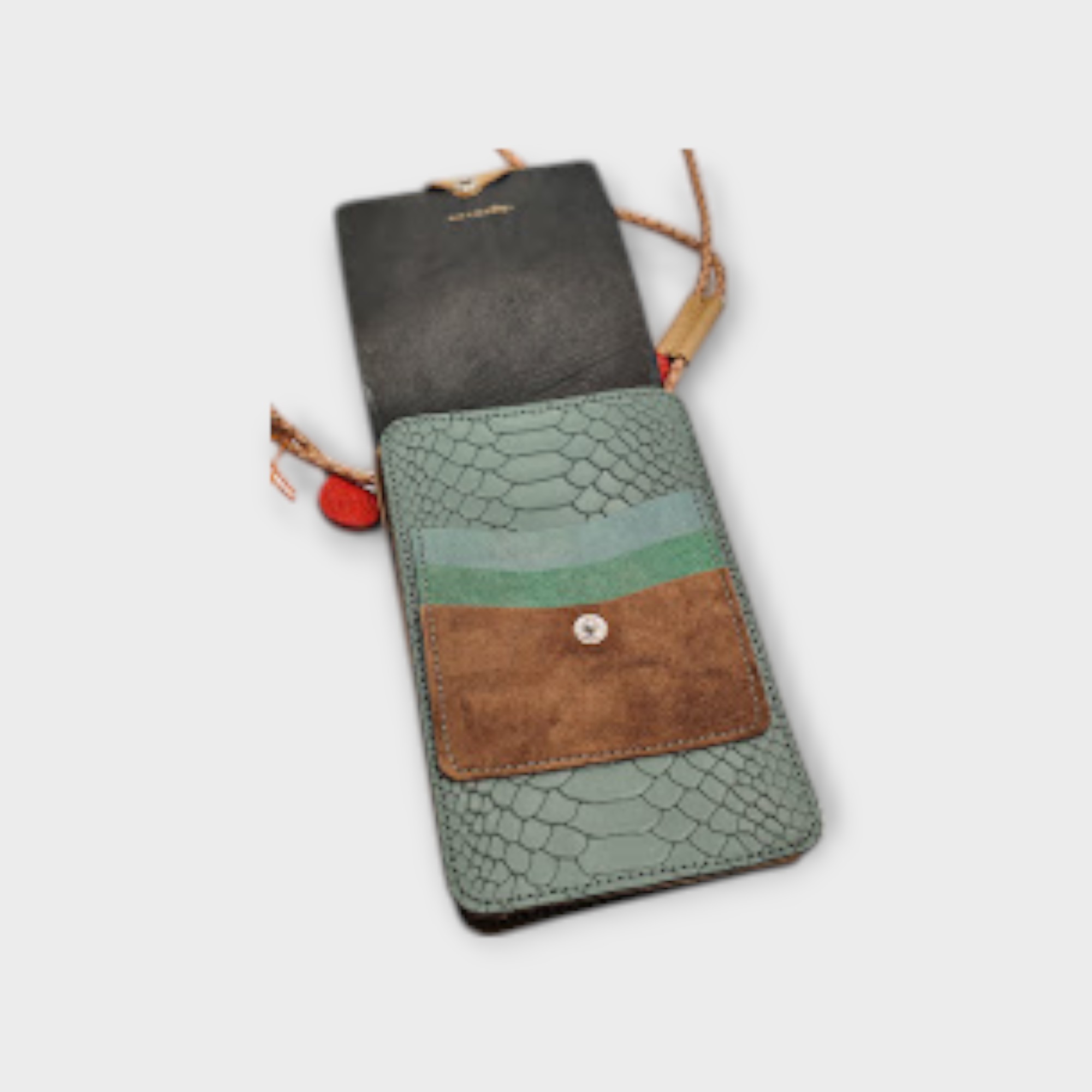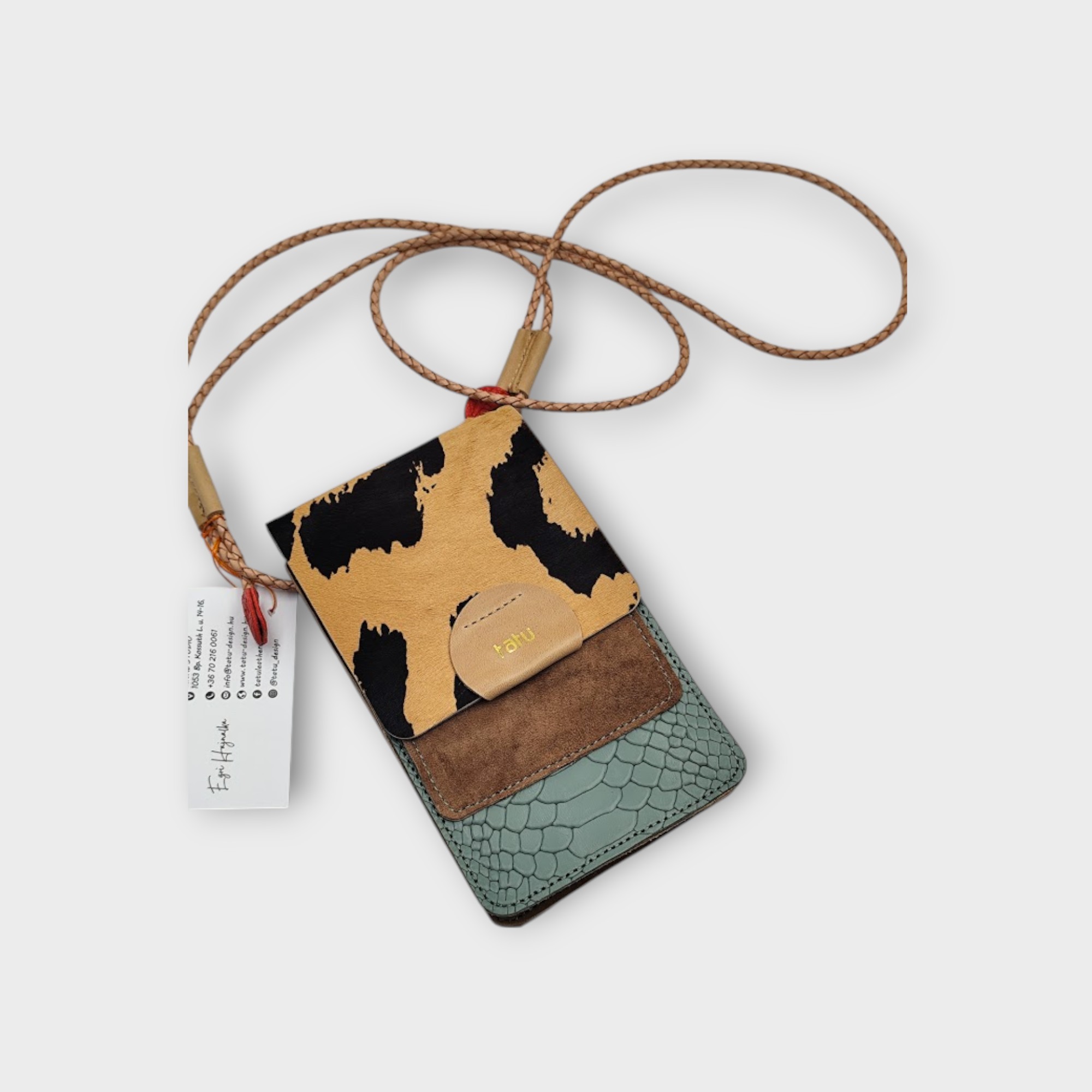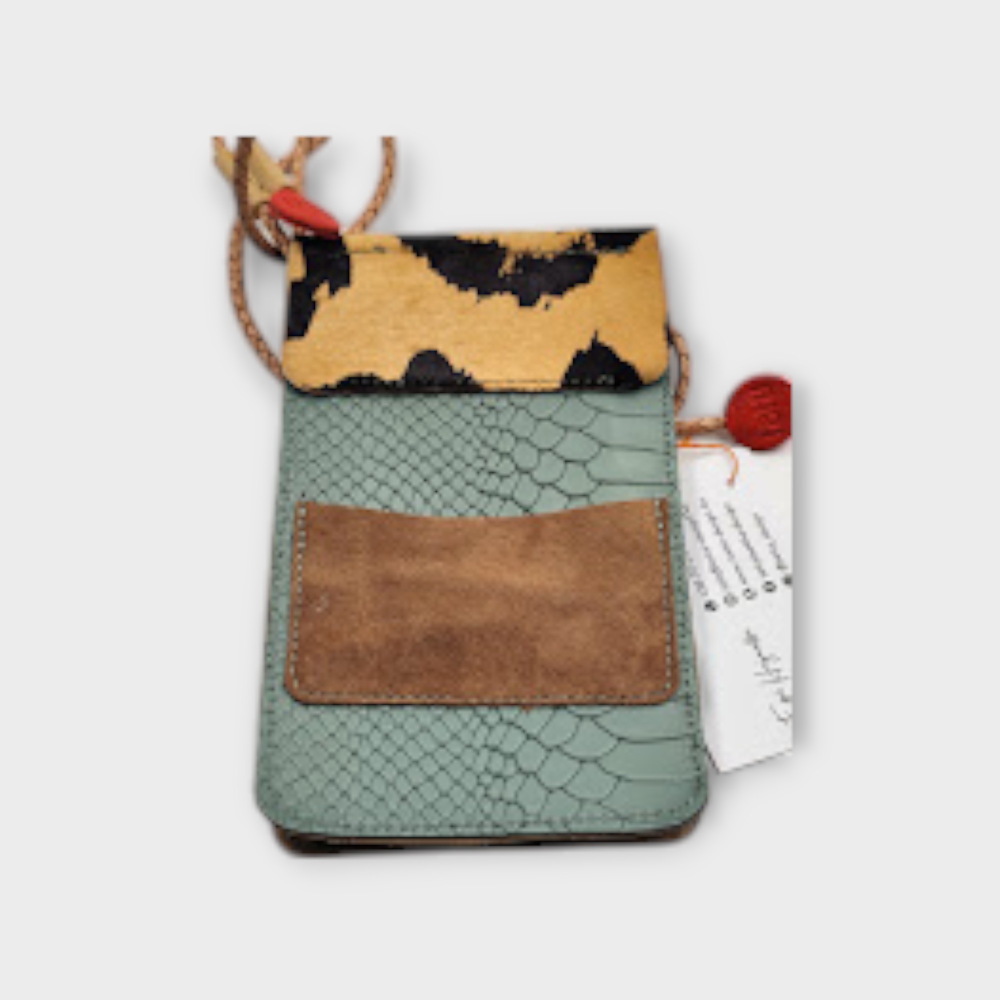 Egyedi megjelenésű színes kis telefontartó táska, igazi kényelmes és praktikus viselet könnyű nyári sétákhoz, fesztivál kiegészítőként is egy dekoratív bohókás modell.