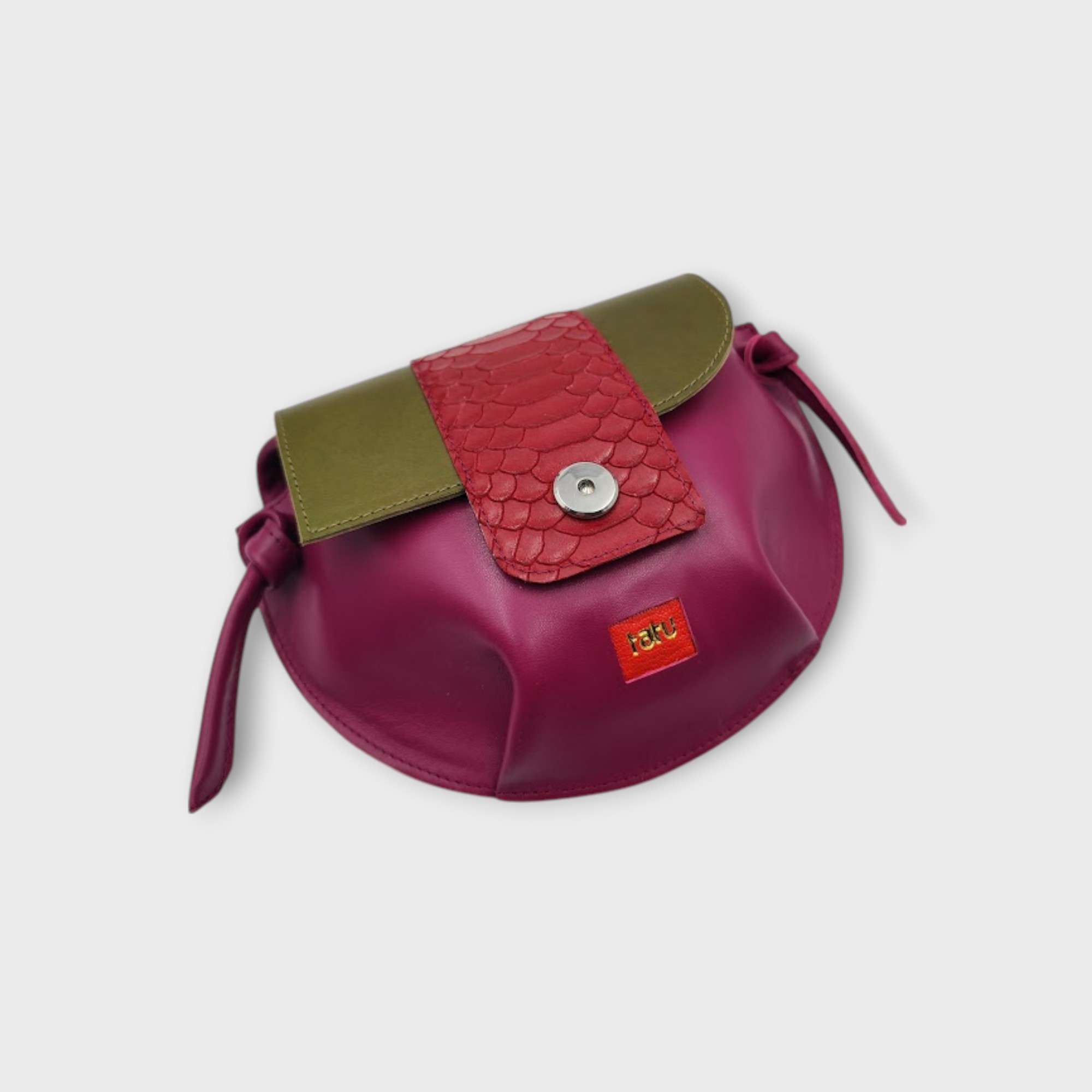 A kistáska tervezésénél a praktikusságot vettem figyelembe, a fedlap szabásának játékával helyet kapott egy belső zseb, mely tökéletesen kompatibilis a tatu MINI pénztárcával, a fő rekeszben kényelmesen elfér telefon kulcs és még pár apróság.