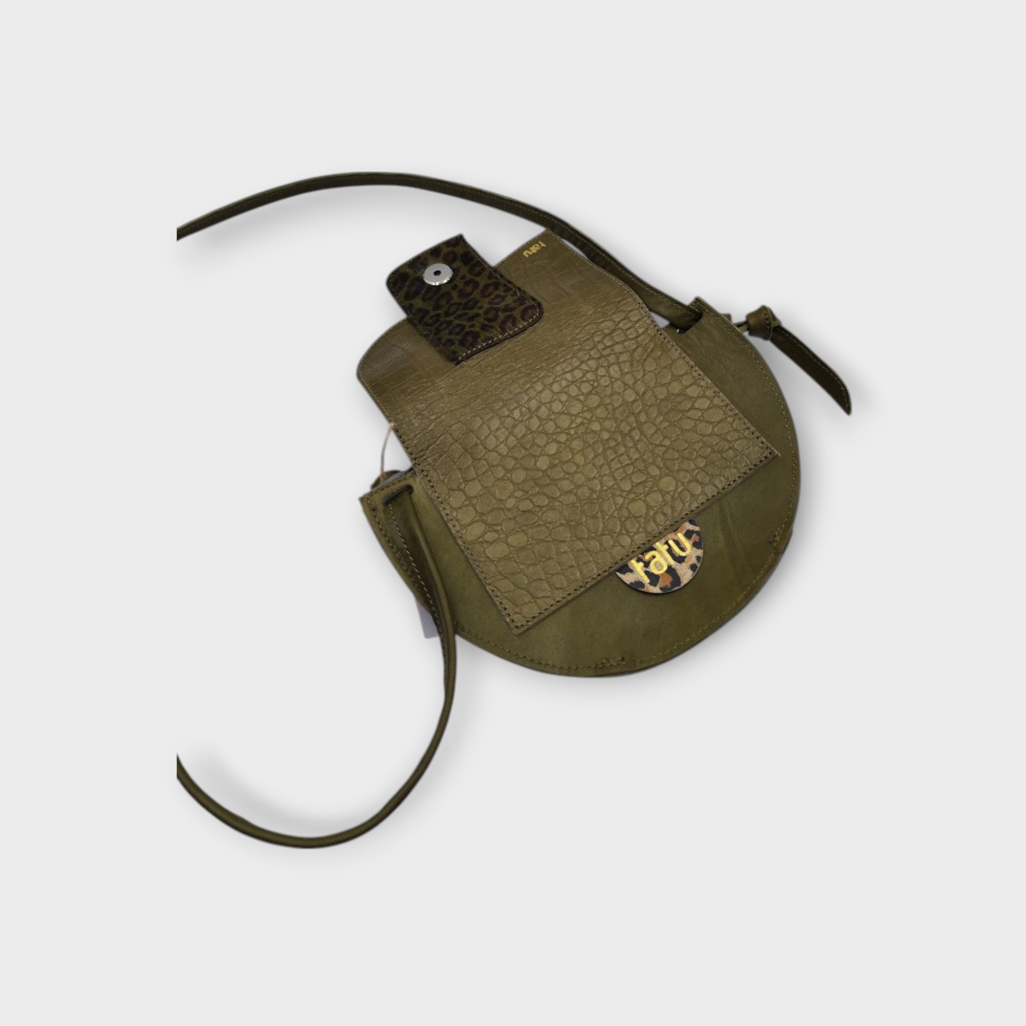 A kistáska tervezésénél a praktikusságot vettem figyelembe, a fedlap szabásának játékával helyet kapott egy belső zseb, mely tökéletesen kompatibilis a tatu MINI pénztárcával, a fő rekeszben kényelmesen elfér telefon kulcs és még pár apróság.